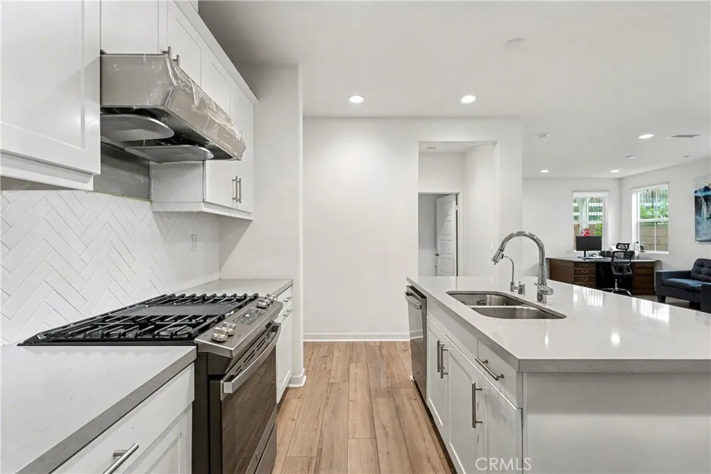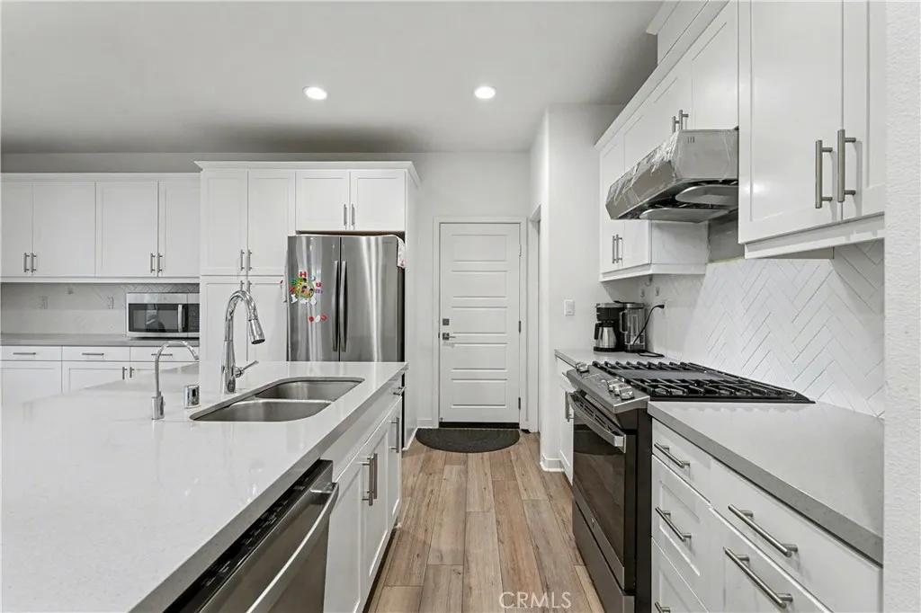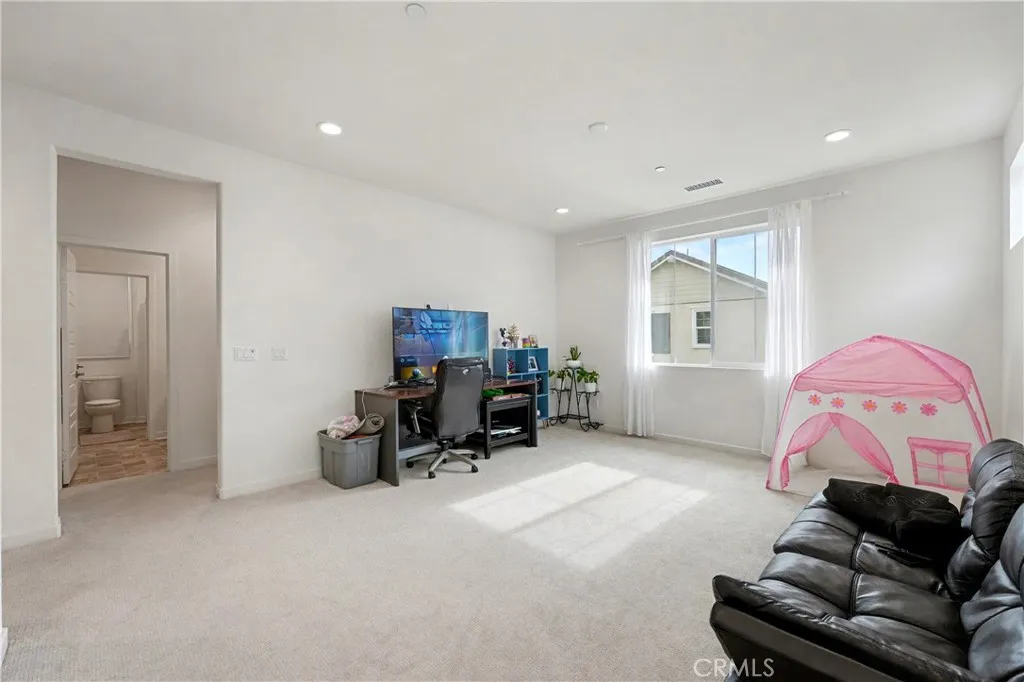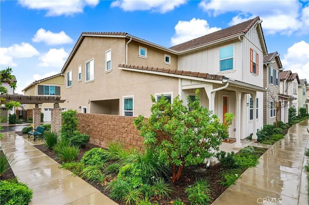 Corner lot single family style detached condo with 2 yards, 3 car attached garage, paid off solar panels and great rating schools. Discover this stunning two-story home, built in 2023, where modern living meets convenience! This spacious residence boasts 4 bedrooms and 3 bathrooms, a big loft, providing ample space for family and guests. Thoughtfully designed, this home offers a convenient downstairs bedroom with a full bath, perfect for guests or multi-generational living. The open-concept kitchen is highlighted by an oversized island, vinyl plank flooring. Upstairs, the primary suite showcases double sink with big shower room. An oversized loft on the second floor could be used as a family theater. The finished backyard is complete with concrete, providing a low-maintenance lifestyle. Nestled on a desirable back corner lot, this home offers both privacy and plenty of outdoor space for relaxation or entertaining. Located in the best location of Fontana, you're just minutes away from shopping, dining, and parks, making it the perfect place to call home. Don't miss out on this incredible opportunity to own a modern gem!