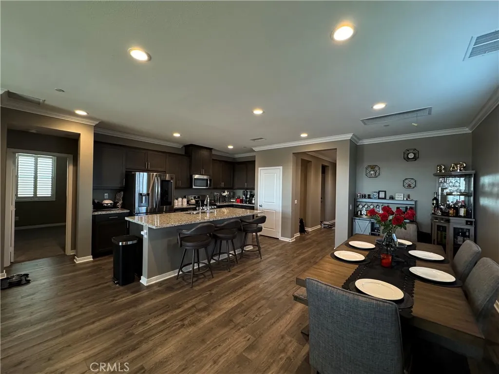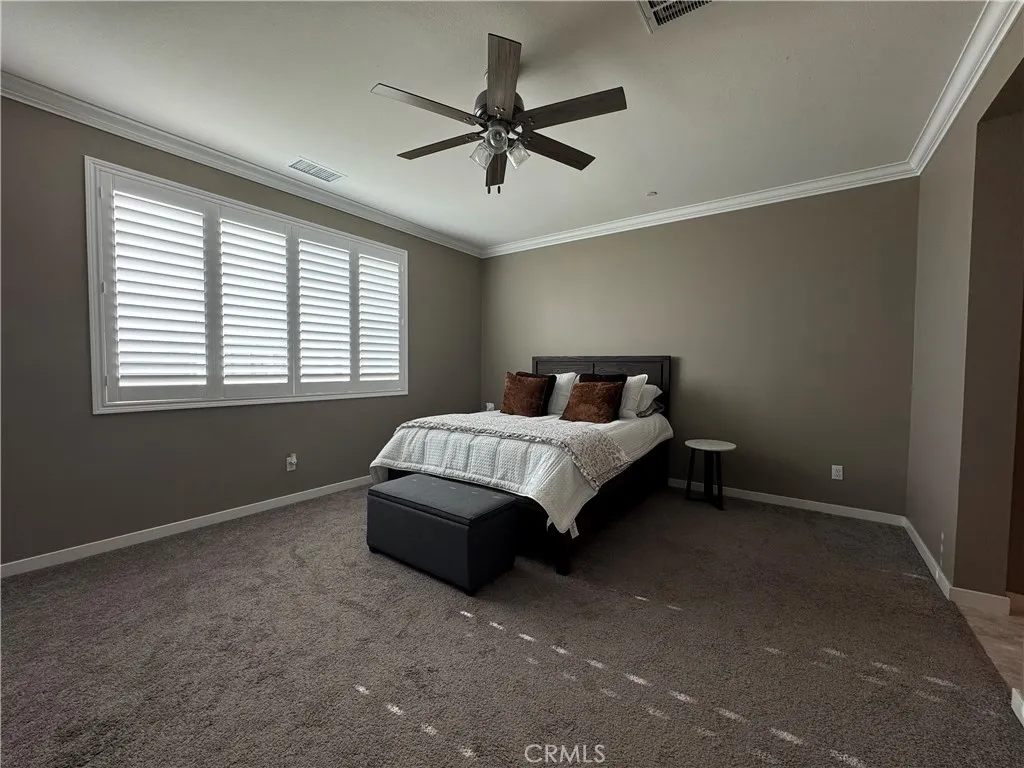 *****PAID SOLAR SYSTEM**** Motivated Seller! Welcome to this spectacular single-story family home inside the highly sought-after Olivewood gated community. From the moment you step inside, you are greeted by an open floor plan with soaring ceilings, elegant crown molding, and shutters throughout the entire home. This residence offers three spacious bedrooms and two and a half bathrooms, designed for both comfort and style. The home is thoughtfully equipped with premium features including a paid-off solar system, a whole-home water softening system, a tankless water heater, and rain gutters. The extended driveway provides ample parking space, while the desirable backyard offers a partially landscaped setting with plenty of potential to create your dream outdoor retreat. Sitting on a premium corner lot at the end of a cul-de-sac, this home offers both privacy and curb appeal. Conveniently located between the 10 and 60 freeways, commuting is effortless. The Olivewood community elevates the lifestyle with two resort-style pools, a beautifully designed clubhouse, fire pits, parks, scenic walking trails, and sports courts for both basketball and volleyball. This home blends luxury, functionality, and location into one exceptional opportunity. Don't miss the chance to make this your future home. Schedule your private tour today!