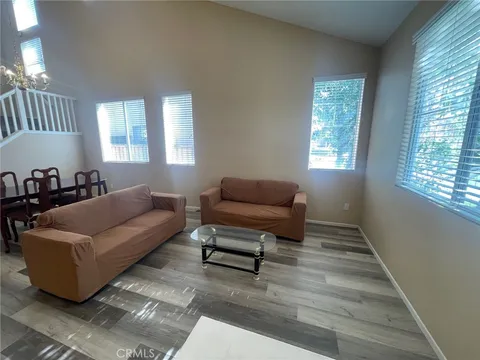 Stunning south-facing two-story single-family residence located in the highly desirable Sycamore Canyon community of Riverside. Featuring 4 bedrooms, 2.5 bathrooms, and approximately 2,200 square feet of beautifully designed living space, this home perfectly balances modern functionality with timeless elegance. The interior showcases hardwood and tile flooring throughout, while the formal living and dining areas impress with soaring ceilings and expansive windows that fill the space with natural light, creating a bright and inviting atmosphere. The open-concept family room centers around a cozy fireplace and flows seamlessly into the gourmet kitchen, which is equipped with stainless steel appliances, a large center island, a walk-in pantry, and direct access to the expansive backyard - ideal for both everyday living and entertaining. Upstairs, you will find three spacious bedrooms and one full bathroom, along with a luxurious master suite featuring dual vanities, a large walk-in closet, and a spa-like bathroom complete with a soaking tub and separate walk-in shower. Step outside to enjoy the private 3,920-square-foot private backyard, perfect for relaxation or hosting gatherings. Attached two-car garage and driveway parking in front. This property also presents excellent rental potential, conveniently located near the University of California, Riverside, making it an attractive option for student housing and generating strong rental income. With close proximity to Sycamore Canyon Park, shopping centers, and major freeways including the 60, 91, and 215, residents can enjoy easy access to outdoor recreation, retail, dining, and commuting routes. With no HOA fees, this exceptional home offers comfort, style, and convenience in one of Riverside's most sought-after neighborhoods - truly capturing the essence of Southern California living at its finest.
