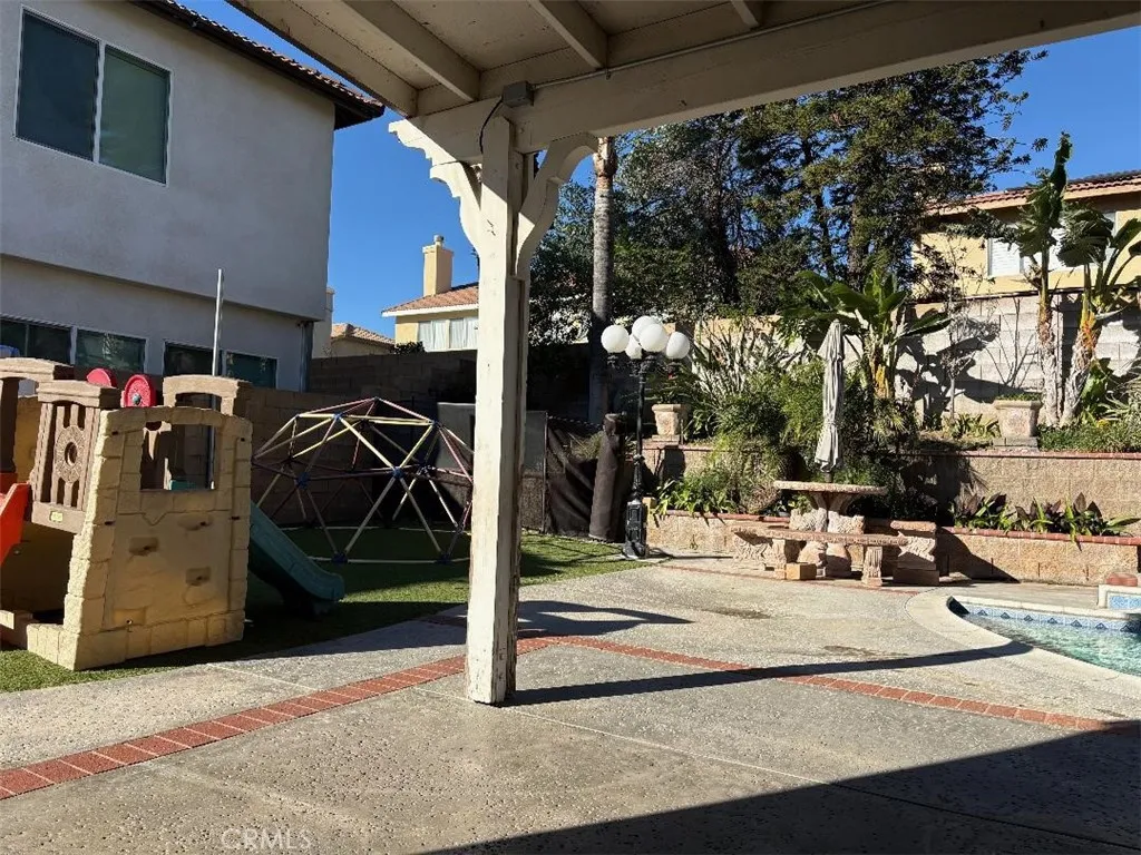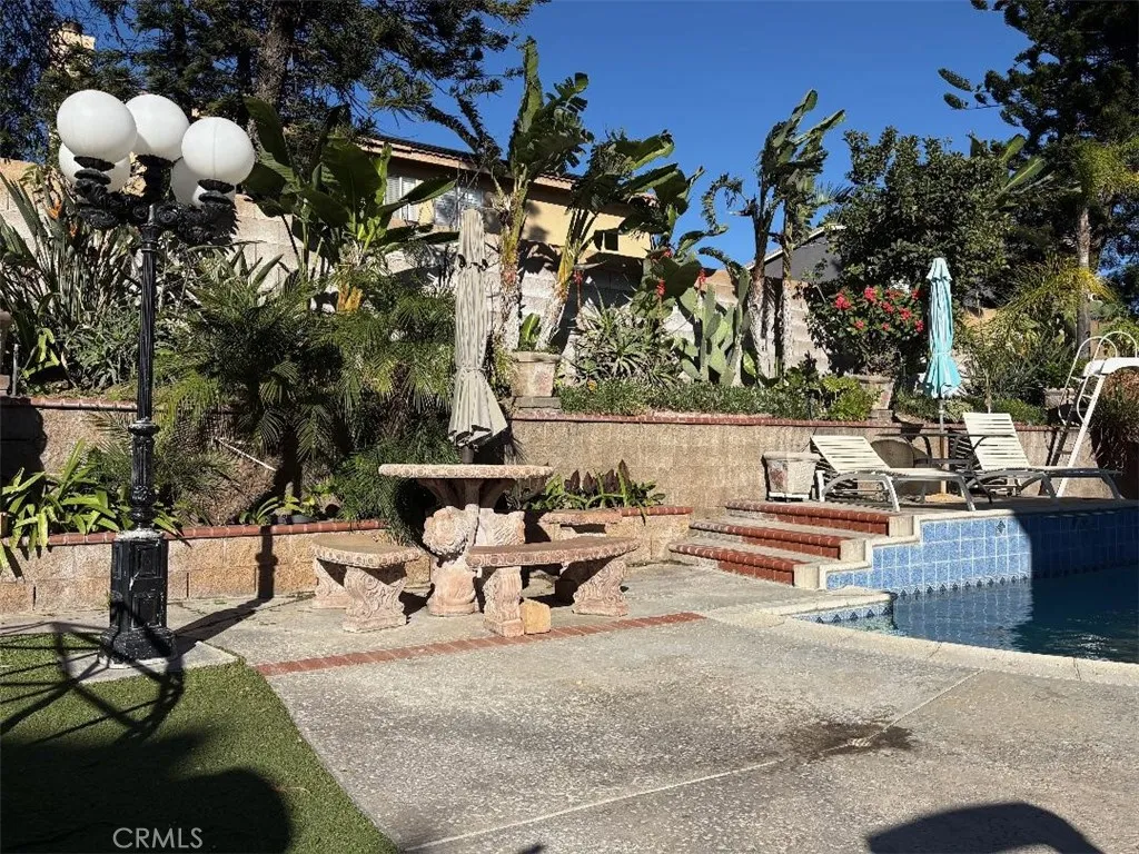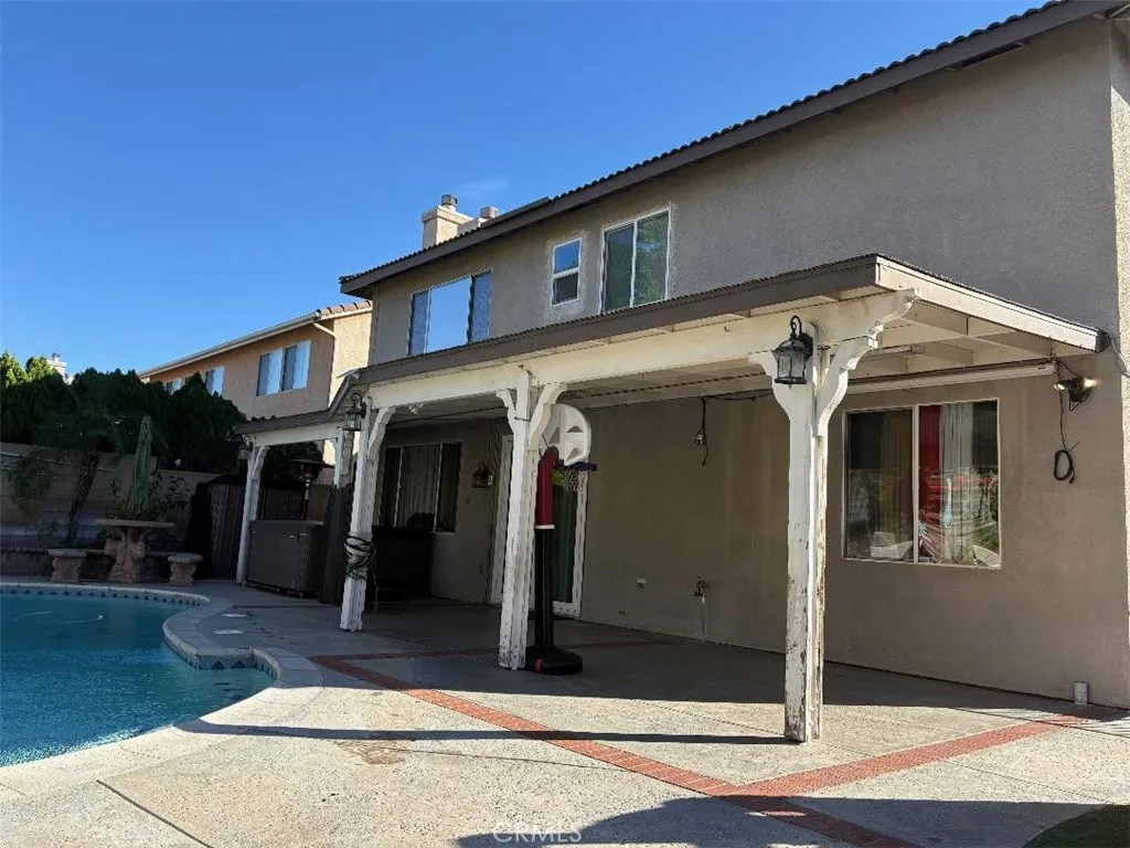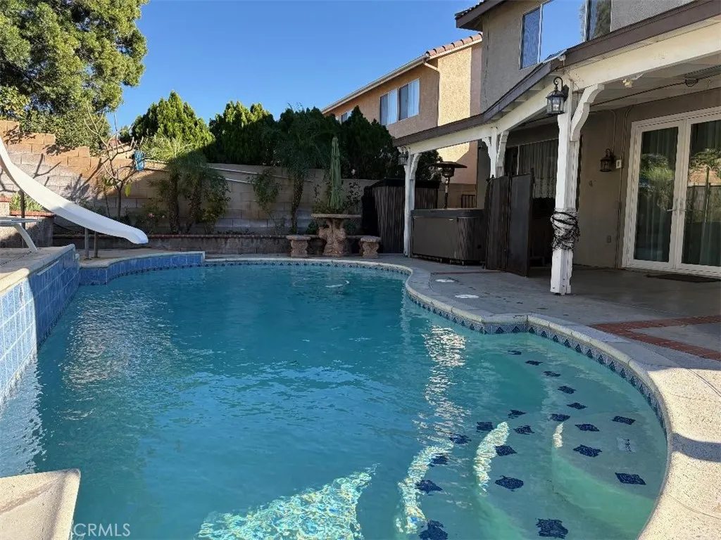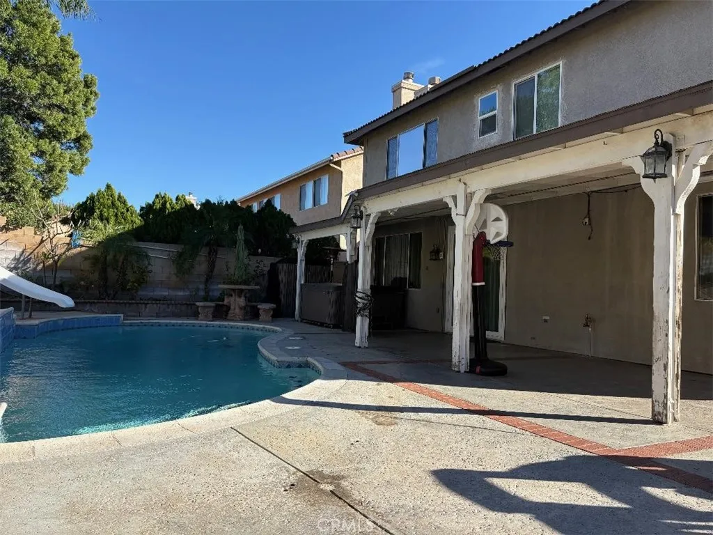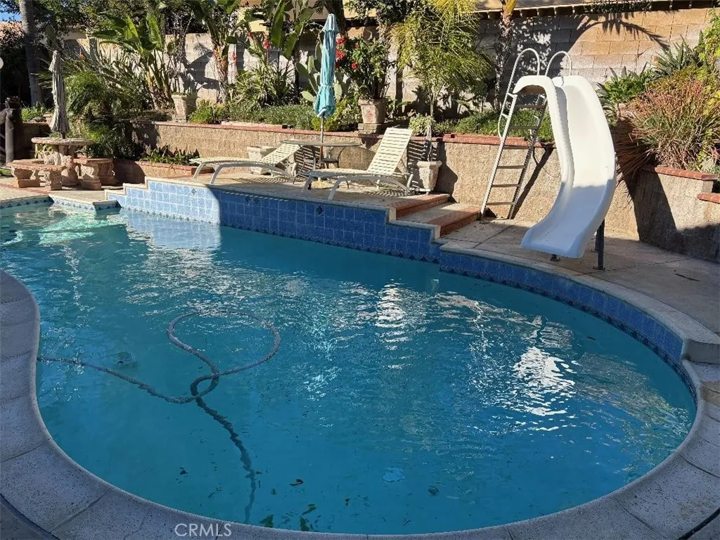 Welcome to your dream home featuring a sparkling pool in the highly desirable North Fontana community of Morningside. This beautiful well maintained two-story residence offers 5 bedrooms and 3 bathrooms, spanning 2,830 square feet of thoughtfully designed living space. The home is nestled in the tranquil, non-HOA neighborhood, perfect for growing families and multi-generational living. Upon entry, you are greeted by an inviting spacious living room, were you'll find soaring ceilings, recessed lighting, crown moldings, laminate wood and tile floors throughout, several windows that flood the space with abundant natural light, creating an airy and open atmosphere. The adjacent formal dining area is ideal for hosting family gatherings and special occasions. The open-concept kitchen is well appointed with ample cabinetry, walk-in-pantry, granite countertops, stainless steel appliances and a center island with sink-perfect for everyday family meals and entertaining. The cozy family room features a charming gas fireplace and large sliding doors that frame picturesque views of the backyard. A downstairs bedroom and full bathroom provide convenience and comfort for guest or extended family. Upstairs, the expansive 16' x 24' primary suite is a true retreat, complete with a large 10' x 11' walk-in closet and fully remodeled spa-like bathroom featuring heated floors, dual sinks. walk-in shower with dual rain showerheads and a separate soaking tub. Four additional generously sized bedrooms share a remodeled hallway bathroom with dual sinks and dual showerheads. A second upstairs family room offers flexible space for a home office, playroom or media room. Step outside to the beautiful landscaped backyard designed for family fun entertaining. Enjoy the in-ground sparkling pool with separate hot tub under a covered wood patio with ambient lighting-perfect for outdoor dinning and enjoying California's year-round sunshine. Additional highlights include fully PAID-OFF SOLAR PANELS, new WATER SOFTENER system and WATER HEATER, a three-car garage with newer roll-up doors and wall mounted openers, and RV parking providing ample space for all your vehicles and storage needs. Conveniently located near Victoria Gardens, freeways, multiple shopping options, plenty of top eateries, and within distinguished top-rated Award-Winning Etiwanda School District, this exceptional home truly has it all. Don't miss this incredible opportunity to make this exquisite North Fontana home your own!