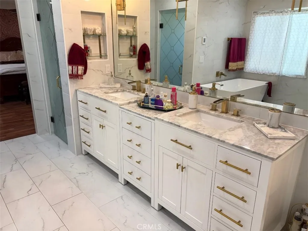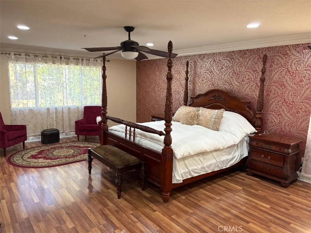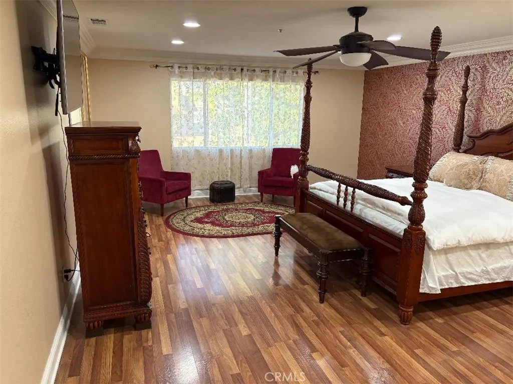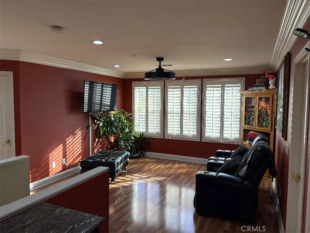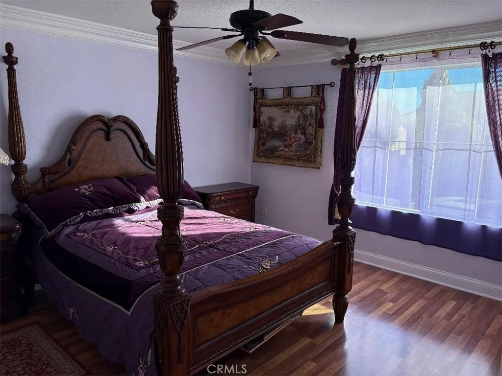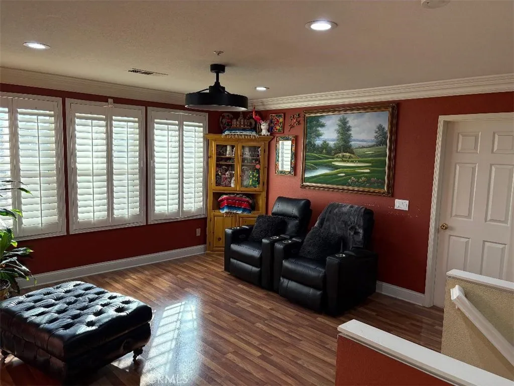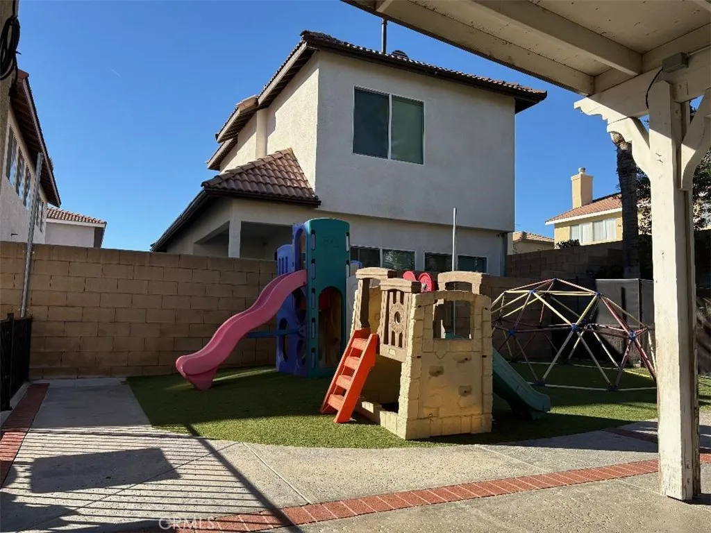 Welcome to your dream home featuring a sparkling pool in the highly desirable North Fontana community of Morningside. This beautiful well maintained two-story residence offers 5 bedrooms and 3 bathrooms, spanning 2,830 square feet of thoughtfully designed living space. The home is nestled in the tranquil, non-HOA neighborhood, perfect for growing families and multi-generational living. Upon entry, you are greeted by an inviting spacious living room, were you'll find soaring ceilings, recessed lighting, crown moldings, laminate wood and tile floors throughout, several windows that flood the space with abundant natural light, creating an airy and open atmosphere. The adjacent formal dining area is ideal for hosting family gatherings and special occasions. The open-concept kitchen is well appointed with ample cabinetry, walk-in-pantry, granite countertops, stainless steel appliances and a center island with sink-perfect for everyday family meals and entertaining. The cozy family room features a charming gas fireplace and large sliding doors that frame picturesque views of the backyard. A downstairs bedroom and full bathroom provide convenience and comfort for guest or extended family. Upstairs, the expansive 16' x 24' primary suite is a true retreat, complete with a large 10' x 11' walk-in closet and fully remodeled spa-like bathroom featuring heated floors, dual sinks. walk-in shower with dual rain showerheads and a separate soaking tub. Four additional generously sized bedrooms share a remodeled hallway bathroom with dual sinks and dual showerheads. A second upstairs family room offers flexible space for a home office, playroom or media room. Step outside to the beautiful landscaped backyard designed for family fun entertaining. Enjoy the in-ground sparkling pool with separate hot tub under a covered wood patio with ambient lighting-perfect for outdoor dinning and enjoying California's year-round sunshine. Additional highlights include fully PAID-OFF SOLAR PANELS, new WATER SOFTENER system and WATER HEATER, a three-car garage with newer roll-up doors and wall mounted openers, and RV parking providing ample space for all your vehicles and storage needs. Conveniently located near Victoria Gardens, freeways, multiple shopping options, plenty of top eateries, and within distinguished top-rated Award-Winning Etiwanda School District, this exceptional home truly has it all. Don't miss this incredible opportunity to make this exquisite North Fontana home your own!