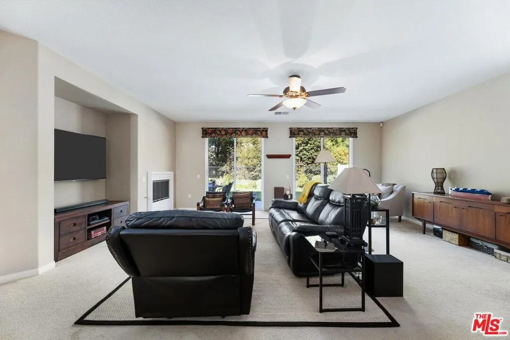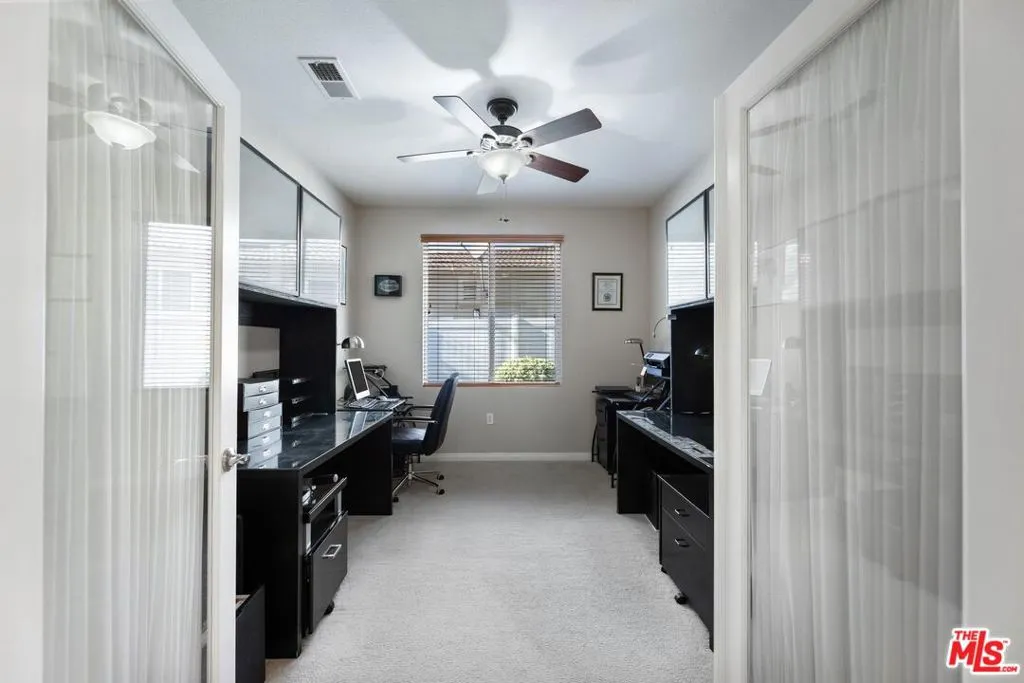 Welcome to Four Seasons 55+, where gated resort style living meets natural tranquility. This beautifully cared for HERITAGE I model single level ranch home on a premium lot with contemporary craftsman detailing (2BR + 2BA + Flex room | optional 3rd Bed) greets you with airy sunlit interiors and an effortlessly expansive floor plan. Perfectly positioned near the community entrance for easy access and a short stroll to the lodge, the home blends beauty and warmth with convenience and serenity. Step outside the front door for a breathtaking view of the snowcapped mountains. Inside, 9ft ceilings and elevated architectural lines frame the sprawling open living and dining spaces -including a formal dining room and a breakfast bar- and flow seamlessly to the large bright kitchen with lots of cabinetry, granite countertops, contemporary finishings & stainless steel appliances. A gas fireplace anchors the space. With a fluid blend of interior and exterior living, glide through a dual set of 8-foot glass patio doors-revealing a lush, beautifully landscaped private backyard sanctuary. Here, the breezy whispers of the wooded trails and uninterrupted greenbelt views create a soothing peaceful retreat with no homes behind you-just nature as your backdrop. A shaded patio area is perfect for both zen mornings and lively gatherings. The lavishly sized and light-soaked primary suite offers a spacious ensuite, including an expansive walk-in closet, and a grand circular soaking tub-perfect for unwinding. Sliding doors gracefully blend into endless views of the backyard's open trail-side greenery and pure privacy. The second bedroom is beautifully scaled with a large closet and a full bright bath and built-in linen cabinetry just out the door. The third room behind chic glass doors-currently a dual office and music studio-serves beautifully as a guest room, creative space, or private study. The home also features a newer air conditioner, a well-appointed laundry room with premium cabinetry and appliances, and a finished attached garage providing both utility and comfort. Guest parking is available in abundance. Enjoy included appliances, thoughtful upkeep throughout, dimmers on lighting and ceiling fans and ultra-low Mello-Roos. In this community, life expands beyond your doorstep. World-class amenities include multiple clubhouses, pools and spas (including an indoor heated pool), sauna, fitness centers, movie theatre, tennis, basketball and pickleball courts, library, putting green, bbq's, restaurant, picnic areas, beauty and massage salon, dog park, bocce ball, horseshoe, shuffleboard, billiards, a ballroom and over six miles of walking and hiking trails await. Clubs, crafts, events and activities galore! Located about 30 miles from Palm Springs at a refreshing cooler elevation, this vibrant 55+ community is also close to wonderful restaurants, shopping, dining, casinos and top medical facilities. Surrounded by open ranch lands and framed by two majestic mountain ranges, this home offers not just a residence but a lifestyle defined by beauty, balance, and belonging. A home that feels like a private hideaway-yet lives like a resort.