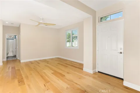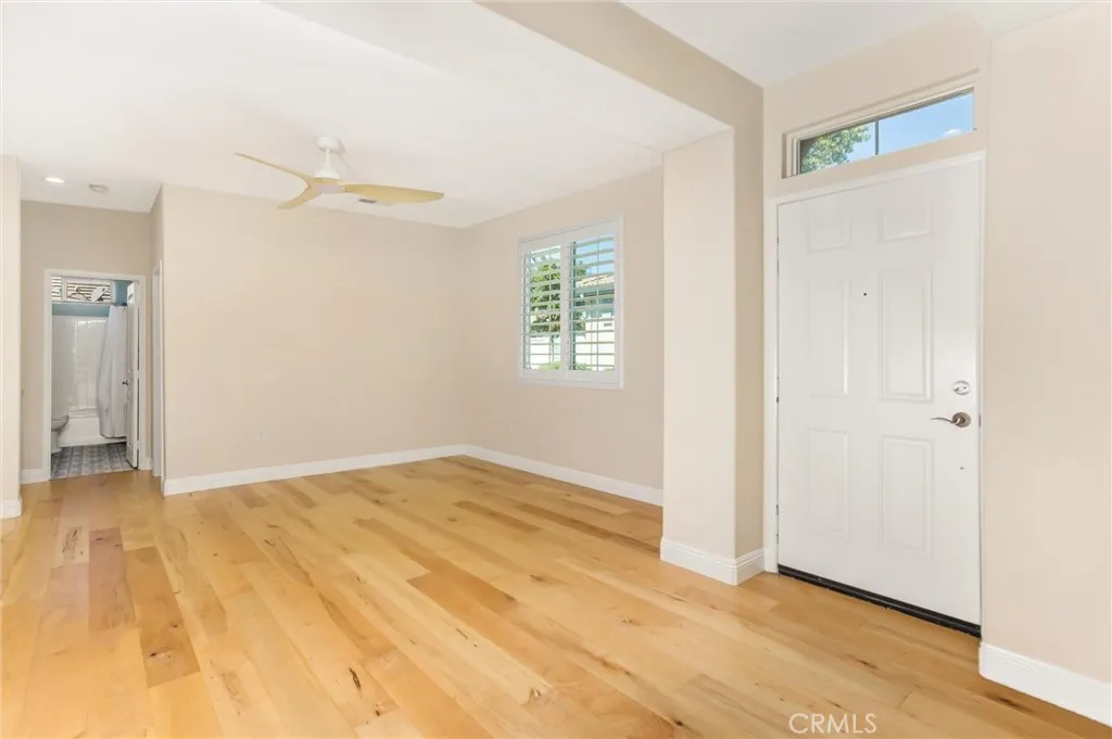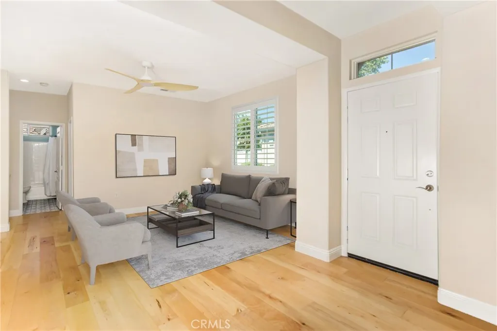 Located in the gated 55+ senior community of Four Seasons. This beautiful Springdale 2 model has been recently updated with over $65,000 in improvements. Those upgrades include: High end wood flooring throughout the home, new wide base moldings, new plantation shutters, new flush lighting, new ceiling fans and new stainless steel appliances. There was a total master bathroom remodel with designer shower and floor tile, quartz counter top, new toilet, removal of a wall, new mirrors and new heavy duty shower door. The secondary bathroom has new tile floors. There has been a new Alumawood patio cover added to the rear patio. The HOA maintains the exterior of this unit other than the patio area. The Four Seasons resort community includes a lodge with a resort style pool complex with cabanas and jacuzzi, grand ballroom, bistro, 50 seat movie theater, billiards room, full service salon, bocce ball courts, 4 tennis courts, 8 pickle ball courts, 9 hole putting green, horseshoe court, shuffle board courts, basketball courts, 2 large fitness centers, six miles of walking trails, indoor pool complex and dog park.