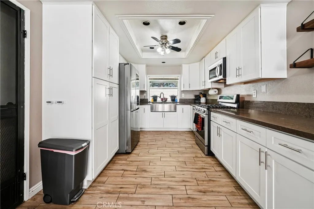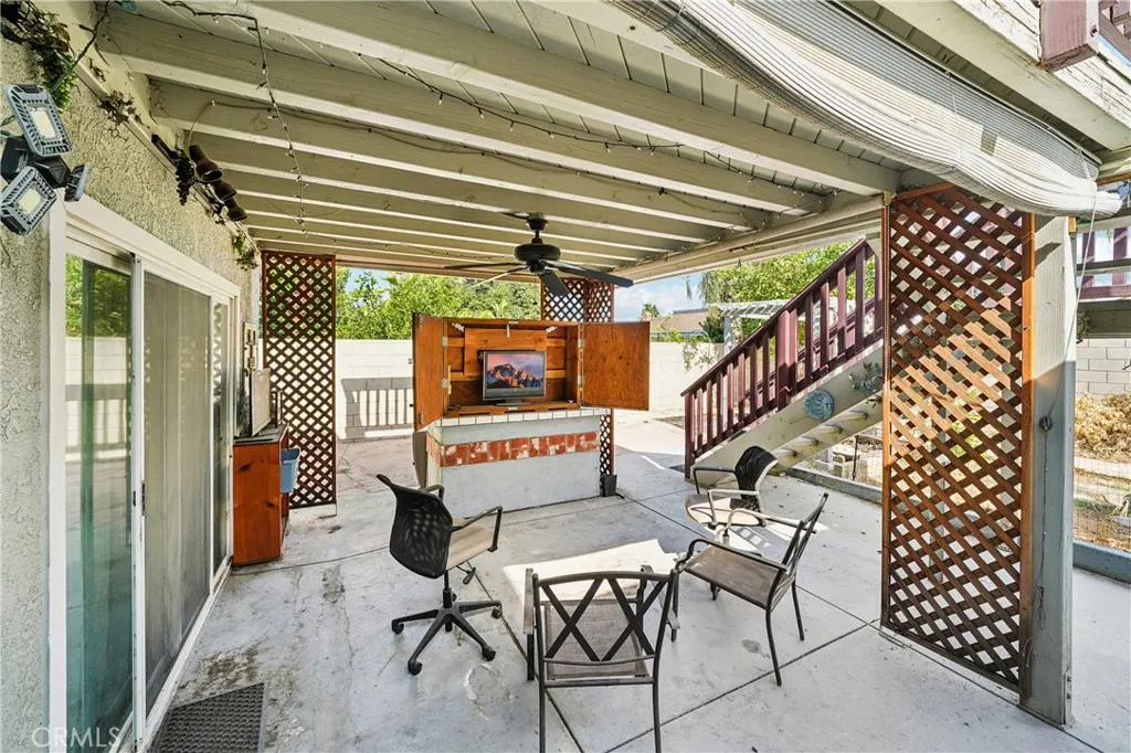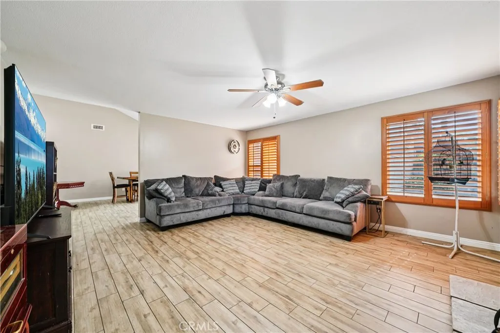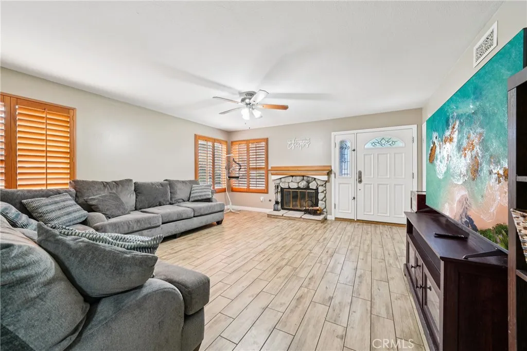 Welcome to 1925 S Starfire - a beautifully updated 3-bedroom, 2-bath home located in the heart of Corona! Step inside and feel right at home in the inviting living room featuring wood-look tile flooring, plantation shutters, a ceiling fan, and a cozy fireplace that creates the perfect atmosphere for relaxing evenings. The remodeled kitchen is a true highlight - showcasing quartz countertops, modern cabinetry, stainless steel appliances, recessed lighting, and a ceiling fan. The open layout connects seamlessly to the family room, making it ideal for entertaining or enjoying gatherings with family and friends. Large sliding glass doors fill the space with natural light and provide easy access to the backyard. Down the hallway, you'll find the spacious primary suite with cathedral ceilings, a ceiling fan, and private sliding doors that open to the covered patio. The primary bathroom offers granite countertops, a vanity area, and a walk-in shower. Two additional bedrooms (one also with cathedral ceilings) and a hall bath with a granite-topped vanity and shower/tub complete the interior living spaces. A large enclosed patio offers flexible use - perfect for a game room, home gym, or additional lounge area. Outside, enjoy a peaceful backyard featuring two storage sheds, wide side yards, and a covered patio with a balcony - a wonderful spot to sip your morning coffee or unwind with a good book. Additional highlights include a two-car garage plus driveway parking for three, and a solar panel system for energy efficiency. Enjoy the convenience of having excellent schools nearby, including Centennial High School, Corona Fundamental Intermediate, and Garretson Elementary. Plus, you're just minutes from premier shopping, dining, entertainment, and easy freeway access - this home truly has it all.