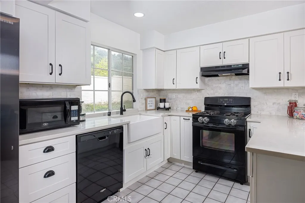 RARE LOWER LEVEL SINGLE STORY END UNIT with 1 CAR GARAGE PLUS 1 ASSIGNED SPACE. Phenomenal home located in the Villas at Hidden Ridge, this Exceptional condo is ready for a new owner. Perfectly set within a gated, well-maintained gated community surrounded by lush landscaping, mature trees, and greenbelts - where the city meets the canyons and mountains. This lower, single-level end unit offers excellent natural light and an oversized enclosed patio, ideal for kids, pets, or outdoor living. Interior features include warm wood flooring and stone tile in the kitchen and baths. The newly remodeled kitchen showcases quartz countertops, tiled backsplash, white shaker cabinets with upgraded black hardware, pendant lighting, counter seating for two, and a white farmhouse sink. Spacious primary bedroom with large walk-in closet and oversized ensuite bath with updated vanity and lighting. Secondary bedroom and hall bath complete the home. Additional features include air conditioning, inside washer and dryer hookups, detached single-car garage, and an assigned parking space. Community amenities include sparkling pool, spa, gym, and children's play area. Conveniently located near shopping, dining, entertainment, schools, and hiking trails, with easy access to toll roads and freeways, yet surrounded by canyons, mountains, lakes, trails, and recreation in Trabuco Canyon.