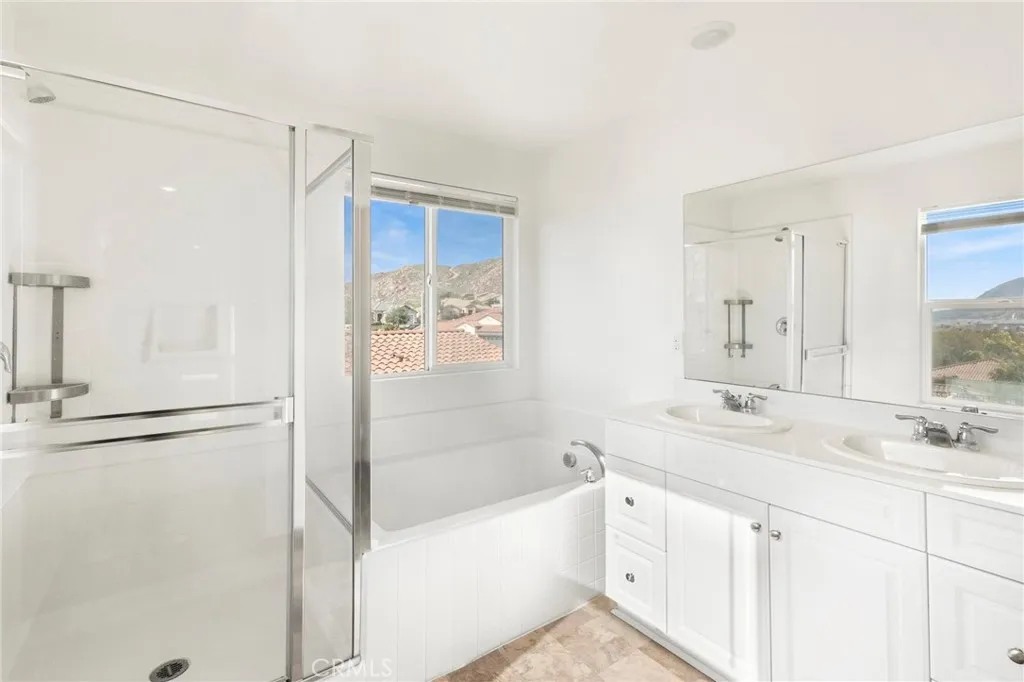 WELCOME HOME to this BEAUTIFUL 4-bedroom, 2.5-bathroom home, built in 2018, located in the peaceful and highly sought-after Spring Mountain Ranch community of Riverside - a quiet, newer neighborhood with NO HOA and breathtaking mountain views. Sitting on a generous 7,405 SQFT. lot with 2,238 SQFT. of bright, open living space, this home offers modern living at its best. As you enter, an inviting foyer sets the tone for the rest of the home. To your left, a versatile flex room awaits - ideal as a home office, guest room, or easily transformed into a formal living room. The main floor also includes a convenient powder room and a spacious under-stair storage area for added functionality. The heart of the home is the open-concept kitchen and living room, designed for seamless flow and effortless gatherings. The beautifully appointed kitchen features stainless steel appliances, a gas stove, double oven, farmhouse sink, and abundant cabinet space. Large windows flood the living area with natural light while capturing serene, unobstructed views of the surrounding landscape. Upstairs, a converted DEN now functions as a fourth bedroom, perfect for larger households or flexible use. Directly across, the expansive primary suite offers peaceful mountain views and a luxurious ensuite bathroom complete with a walk-in shower, soaking tub, dual vanities, and a generous walk-in closet. Two additional well-sized bedrooms, a full bathroom with dual sinks, and an upstairs laundry room complete the second floor. The home has been freshly painted throughout in a bright, modern white, creating a clean and contemporary feel. This home is equipped with a solar energy system with an active SOLAR LEASE, delivering significant monthly savings on electricity. Conveniently located just 15 minutes from UC Riverside, steps from an elementary and high school, and less than 15 minutes from restaurants, coffee shops, shopping, and everyday essentials. With easy freeway access, a peaceful neighborhood setting, this home offers both comfort and unmatched convenience. So why wait? Make 20765 Barn Road YOUR HOME, TODAY!