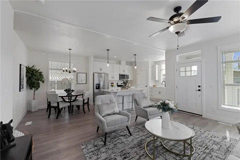 Brand new 3 Bed/2 Bath manufactured home with bright open floor plan. Located in all-age community in Ontario, CA. The home is located near the front of the park. Home features large windows, 9 ft ceilings, and luxury vinyl plank flooring throughout. The kitchen includes a roomy island, plenty of storage cabinets, pantry, and fully equipped with stainless steel appliances with 6 year warranty for buyers peace of mind. The master bedroom includes a walk-in closet and private bathroom. Carport can fit up to 2-3 cars depending on car size. This home is the perfect blend of style and function.