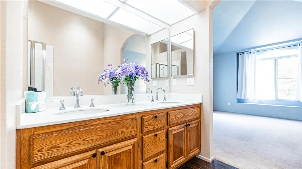 This First Edition Community Townhome is located in most desirable Corona Hills- Offers Formal Dining and Living Room with romantic Fireplace. Sliding door leading to the Patio area ideal for relaxation facing and nestled in a picturesque Green belt completely block Fenced and landscaped -Ideal for kids to play-3 Spacious Bedrooms- 2.5 Bathrooms - Master with Dual Sinks, Tub and Shower, also has it's own private Balcony- Other features of this blend of Elegance, Style and Comfort in the upgraded gourmet Kitchen with lovely white Cabinetry, Granite Counters, Stainless Steele appliances, Range/Oven, Microwave, Dishwasher, Refrigerator- Also included are the Washer/Dryer- Newly installed Skylight windows placed meticulously thru-out the home- Beautiful Wood flooring with Plush natural colored Carpeting in all bedrooms - Lots of storage and white Linen Cabinet at the upstairs hallway - Low HOA dues, close to Association Pool-Spa, walking distance to Shopping, close to both the 91 & 15 Freeways