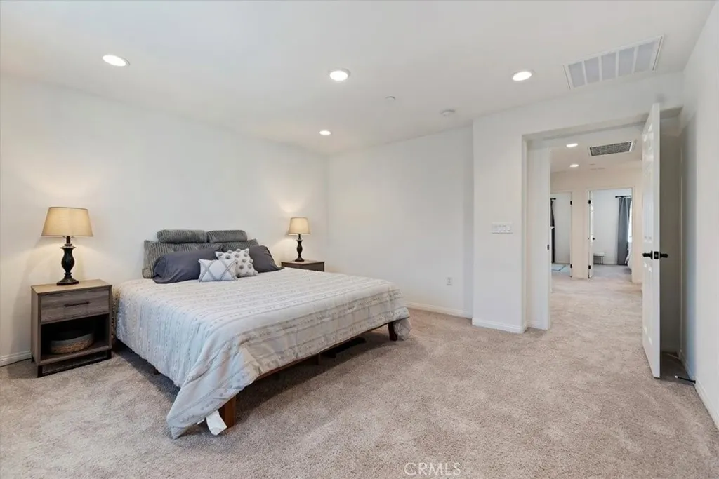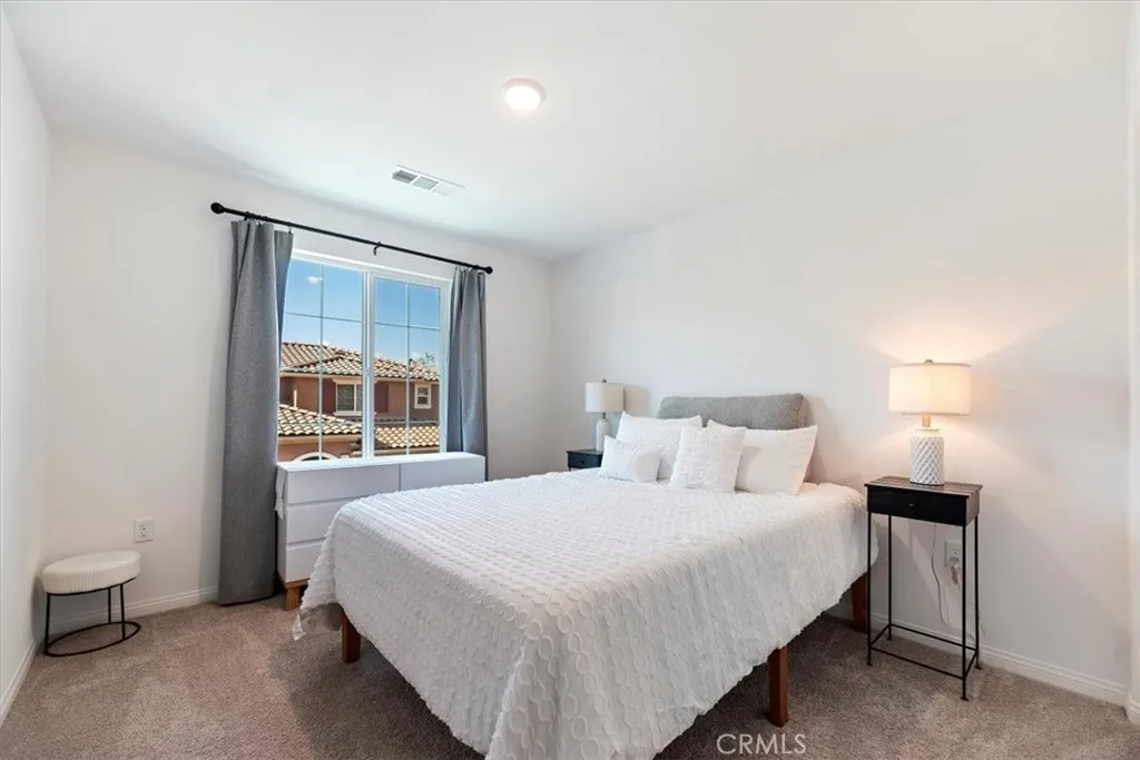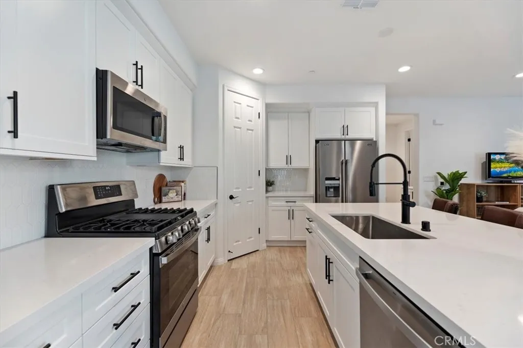 Welcome to Skyview at Terramor, where modern design meets resort-style community living. This light, bright, and airy residence offers upgraded finishes and a highly desirable location within the development. The main level features durable ceramic wood-look flooring and an open-concept layout ideal for everyday living and entertaining. The kitchen is beautifully appointed with quartz countertops, white self-closing cabinetry, black hardware, stainless steel appliances, and a deep farmhouse sink centered in the island. A spacious corner pantry provides additional storage and functionality. Adjacent to the staircase, a generously sized wraparound storage closet offers exceptional hidden storage space. Raised-panel doors throughout the home create a clean, cohesive finish. Upstairs, a spacious 16' x 10' loft provides flexible living space and was originally designated by the builder as a potential fourth bedroom. The primary suite includes dual sinks and a large walk-in closet. A convenient upstairs laundry room adds everyday practicality. Parking is conveniently located directly in front of the unit (available only on one side of the street, and this home benefits from that placement). This home includes over $51,000 in builder upgrades (see supplements). An exceptional opportunity within Terramor's sought-after Skyview community.