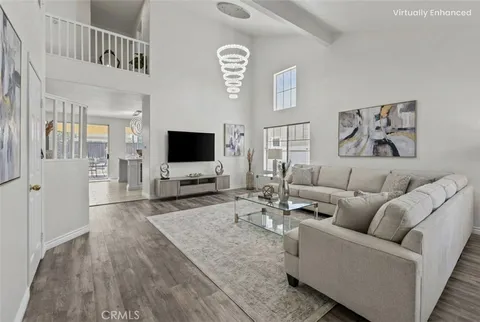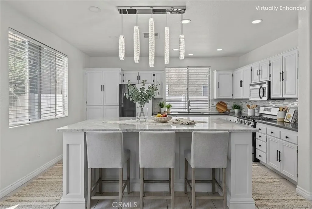 4 Beds | 3 Baths | Large Bonus Room (Optional 5th Bedroom) | 2,794 Sq Ft | 4-Car Garage | Solar | Dedicated Laundry Room | Remodeled Front Yard | Electric Fireplace | Low HOA | High Ceilings Welcome to Horsethief Canyon Ranch. This 4-bedroom, 3-bath home with a large bonus room provides 2,794 sq ft of well-designed living space on a 6,969 sq ft lot. The living area features soaring ceilings, a clerestory window, and a chandelier that enhances the natural light. The functional layout includes a bedroom and bathroom on the main level. The remodeled bathroom showcases a floating vanity, LED mirror, marble accents, and a clean, modern walk-in shower. The updated front yard features low-maintenance turf and contemporary design elements, while the backyard includes a covered patio with a shade sail for added comfort. The formal dining room highlights an upgraded split-face tile fireplace with a color-changing insert. The open kitchen includes marble countertops, a cabinet-style island, and generous space for everyday use. Upstairs, the primary suite includes a walk-in closet, a chandelier, and a full bath with a spacious double-sink vanity. The community includes pools, a gym, tennis courts, sports fields, parks, and scenic hiking trails.