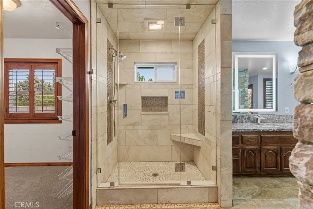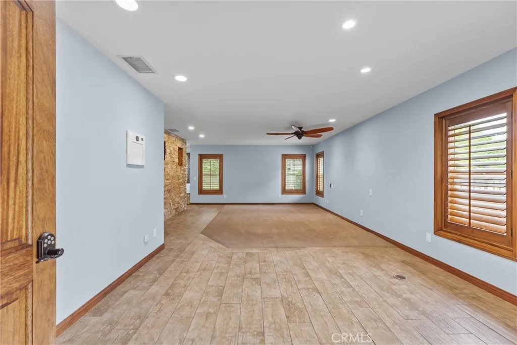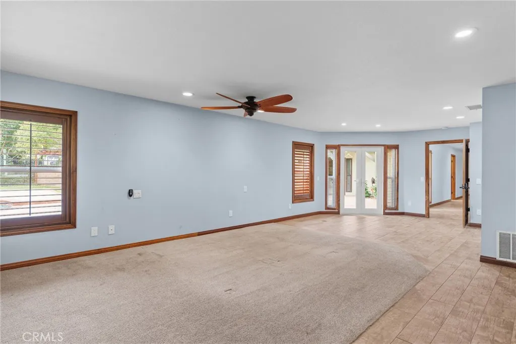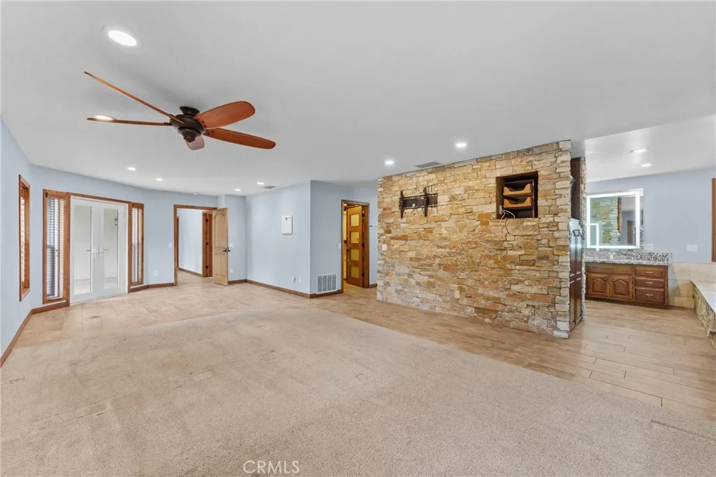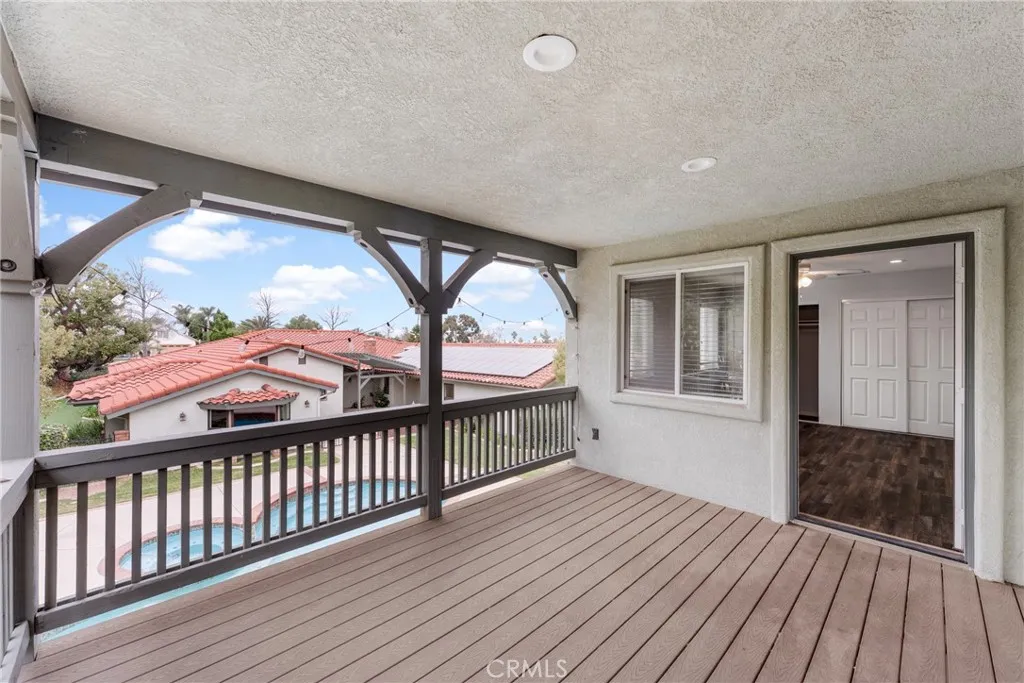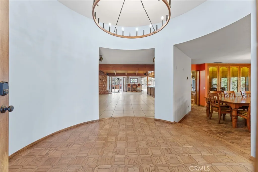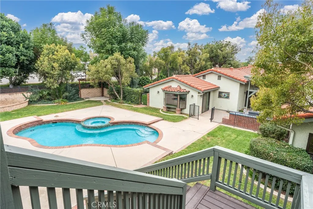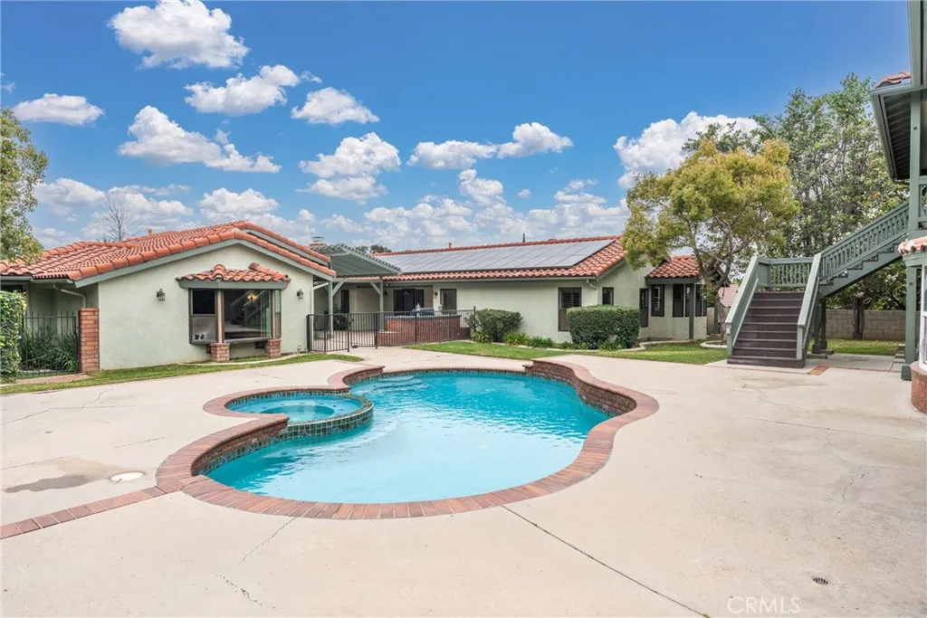 Set within the sought-after Chase Plantation enclave of Corona, this remarkable Spanish-style estate blends timeless architecture with expansive lifestyle! Built in 1984 and thoughtfully designed across 7,000+ sq. ft., it offers 8 bedrooms and 6.5 baths, ideal for multigenerational living or grand scale entertaining. Meticulous landscaping enhances the home's curb appeal, framing the stately exterior. Inside the single-story main residence, an open floor plan unfolds beneath recessed lighting and rich woodwork. Impressive double doors welcome guests into a dramatic rotunda foyer, from which the living area and dining alcove connect. Vaulted wooden ceilings crown the great room, where custom shelving and a striking brick fireplace establish warmth and character. Serving as a culinary hub, the entertainer's kitchen displays a central prep island, stainless steel appliances, abundant cabinetry, and a breakfast counter flanked by a wet bar and large wine rack , ready for gatherings of all sizes and types. The comfortable retreats accommodated by ample closets and sleek, contemporary baths, are all generously sized. Your primary suite is a soothing sanctuary with an ensuite featuring a soaking tub, dual sinks, an integrated vanity, and an oversized shower. Outdoors, a trellis-covered patio with a built-in grill sets the stage for weekend BBQs, while a pool and spa anchor the fenced courtyard between the front dwelling and the two-story guest house that consists of 1800+ sq. ft., a kitchenette, and several private balconies. Resting on 0.79 acres, it also includes solar panels, secondary driveway access to RV parking, an attached 4-car garage, and open land for versatility. Conveniently close to schools, shopping, parks, and I-15, find everything within easy reach as you imagine starting a new chapter here! Don't Dilly Dally, this one is a peach!