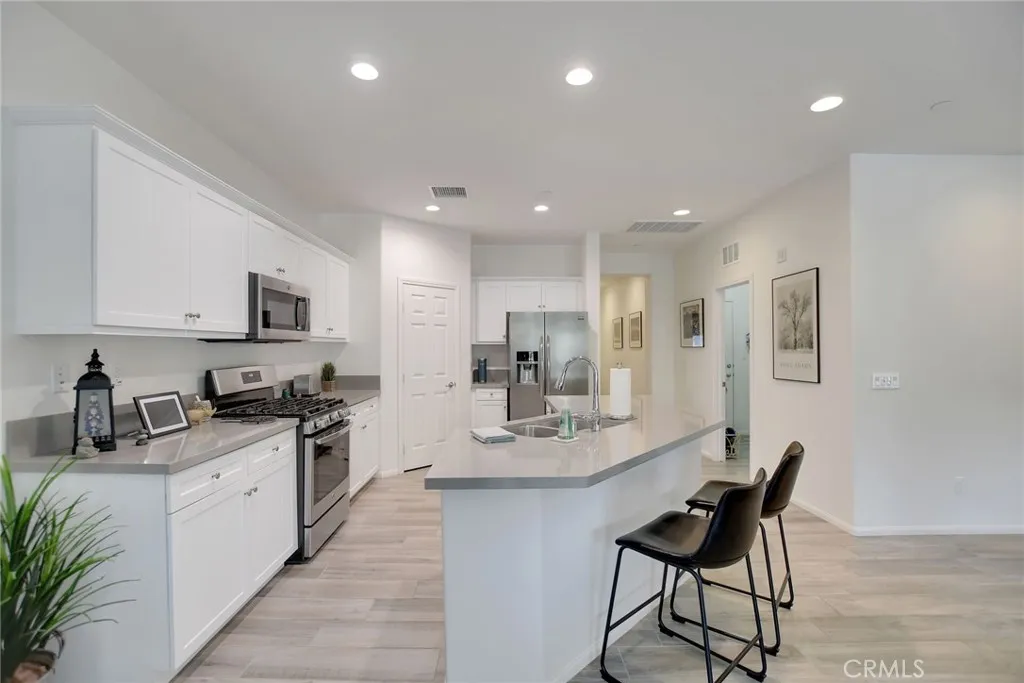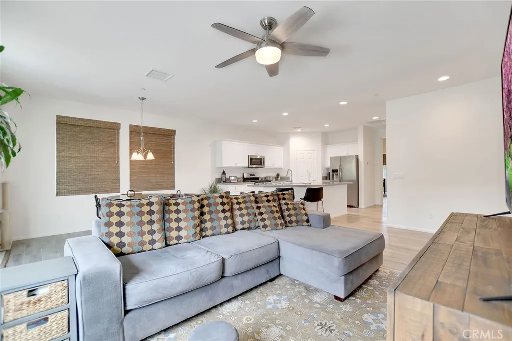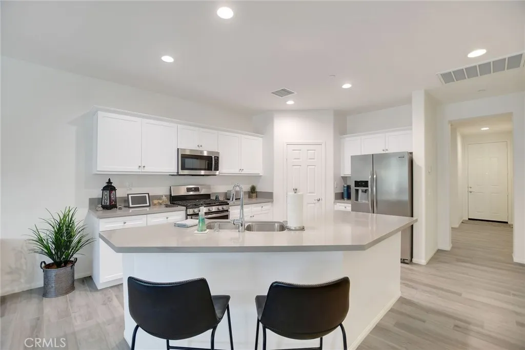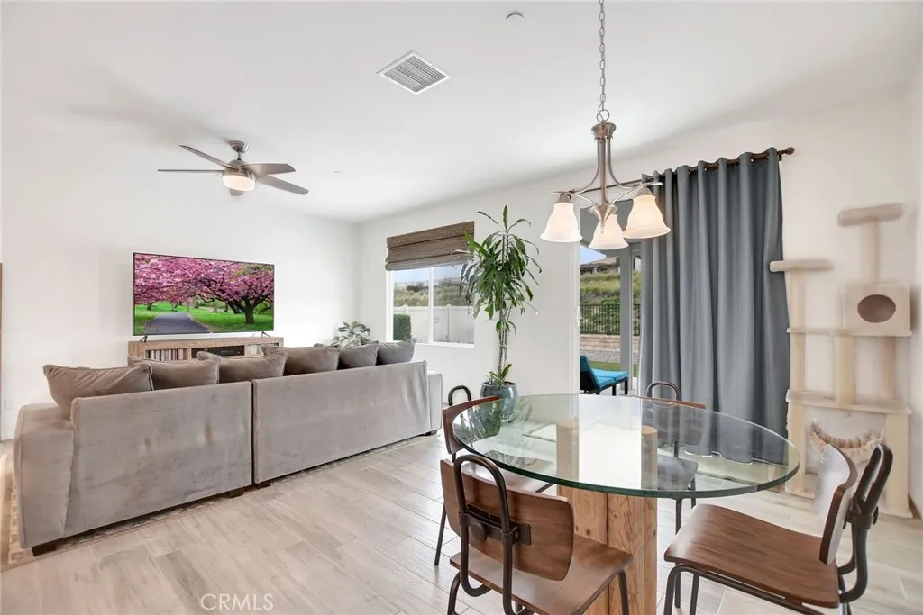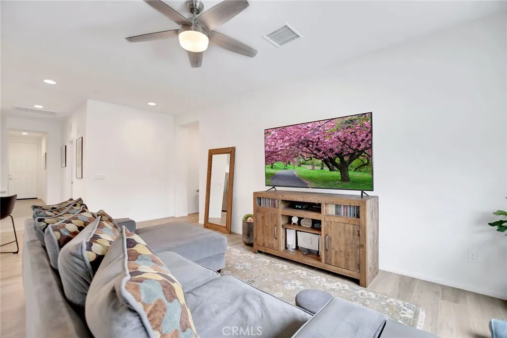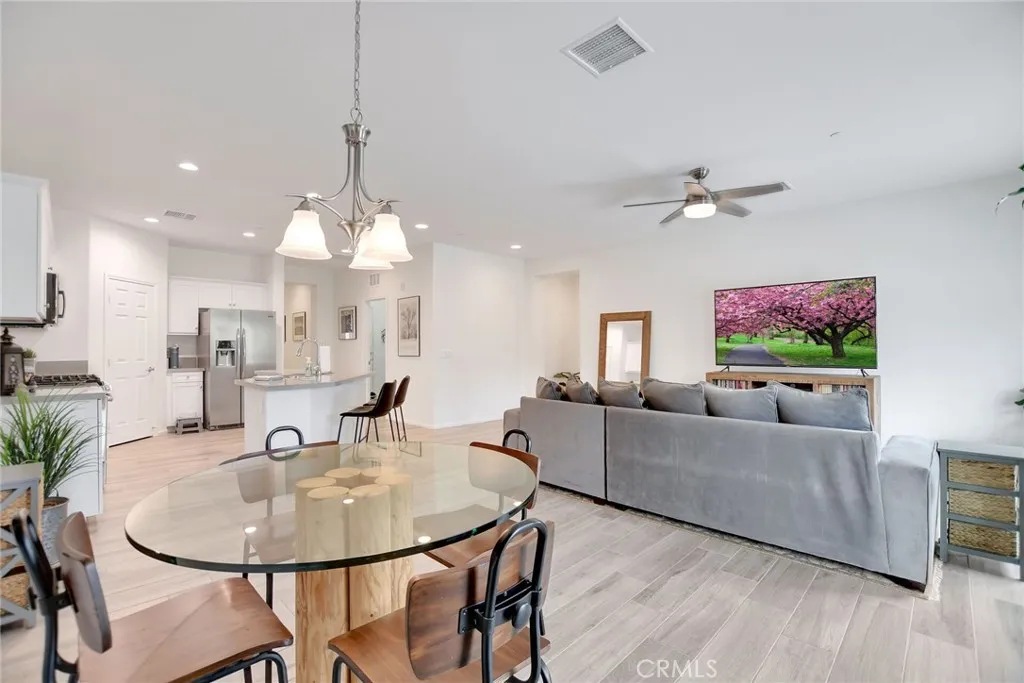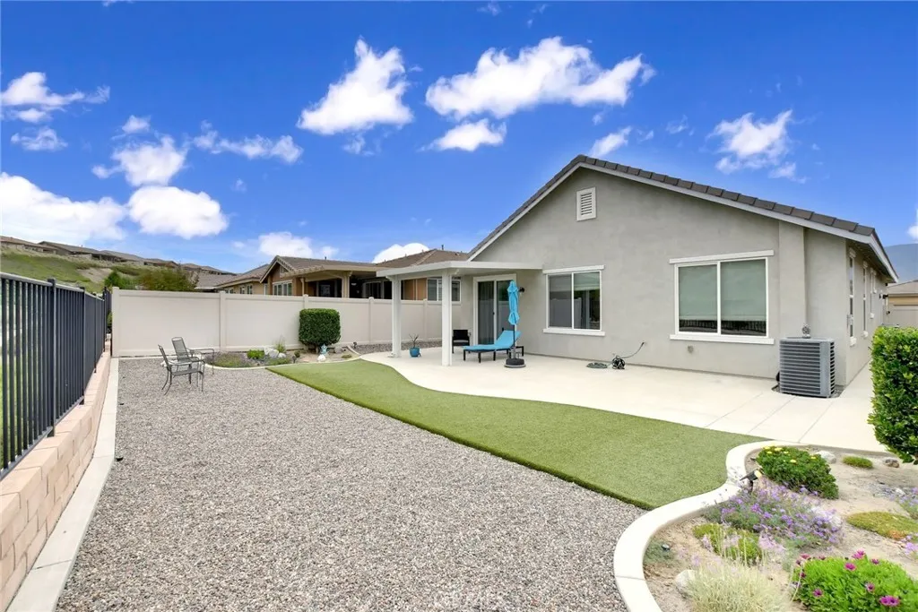 Built in 2017, this 2-bedroom, 2-bath Manor model in the sought-after Four Seasons 55+ community offers 1,496 sq ft of living space. Highlights include a bright open layout with 9-ft ceilings, quartz kitchen countertops, , and a primary suite with dual-sink vanity and walk-in closet. The drought-tolerant landscaping ensures low maintenance, with a beautiful walking trail just off the rear yard. Enjoy resort-style amenities including walking trails, tennis & pickleball courts, 3 pools, gyms, and an on-site restaurant. Home has many upgrades and shows like a model home. Washer, Dryer and refrigerator are included.
