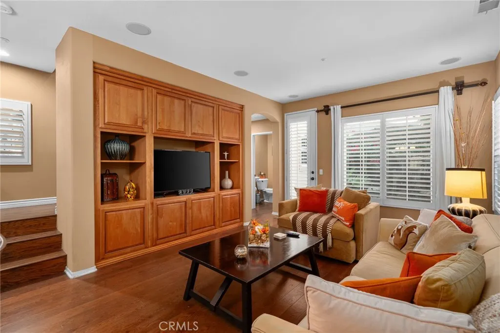 Welcome to 4140 Garvey Way, a beautifully upgraded 3-bedroom, 2.5-bath, 1,901 sq. ft. corner home tucked inside the highly sought-after Glenwood gated community in Riverside. This residence offers ultimate privacy with only one neighbor adjacent to the home. Step inside to discover wood flooring, custom shutters, and an inviting living area featuring a built-in entertainment center. The first floor boasts an elegant, traditional kitchen complete with custom cabinetry, ample counter space, and views into the open living and dining areas ideal for entertaining. Upstairs, a spacious den offers the perfect flex space for a home office, media room, or play area. The primary suite includes a walk-in closet with custom built-in wardrobe, an en-suite bathroom with a soaking tub, separate shower, and his-and-hers sinks. The backyard is designed for true relaxation with a custom-built patio, fire pit, and an over-ground hot tub, creating the perfect setting for year-round enjoyment. Additional upgrades include garage built-in storage cabinets and beautifully crafted custom blinds throughout. Located within the vibrant Glenwood community, residents enjoy access to a sparkling pool, spa, parks, fitness center, and a recreation room. Start the new year in a home that feels like new. Make 4140 Garvey Way yours today!