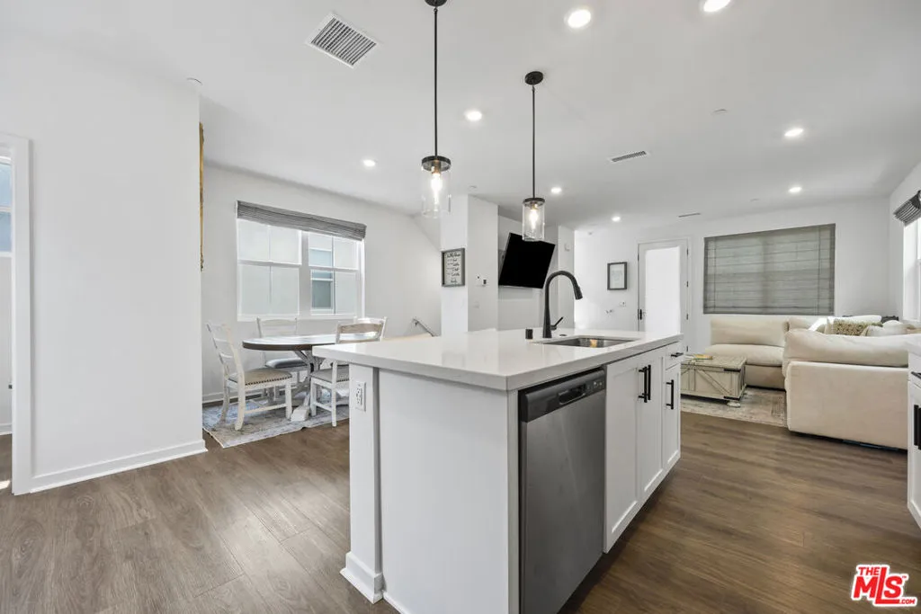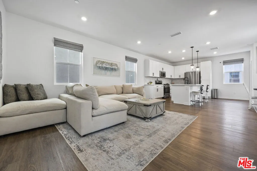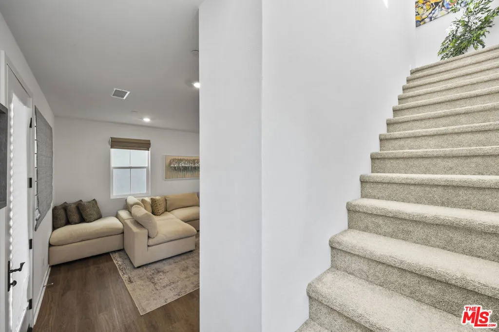 Welcome to 4456 S Bryant Paseo, a contemporary, move-in-ready residence located in the highly sought-after Parkside community of Ontario Ranch. Built in 2023, this stylish tri-level condominium offers 3 bedrooms, 2.5 bathrooms, and approximately 1,550 square feet of thoughtfully designed living space ideal for today's modern lifestyle.The bright, open-concept interior showcases designer upgrades throughout, anchored by a sleek kitchen featuring quartz countertops, a generous center island, and stainless steel appliancesperfect for both everyday living and entertaining. An electronic blind system enhances comfort, privacy, and energy efficiency, while abundant natural light fills the home.The primary suite is a private retreat with a spacious walk-in closet and dual-sink vanity. Two additional bedrooms offer flexibility for family, guests, or a home office. Upstairs laundry adds everyday convenience, and the home's intelligent layout maximizes both space and functionality.The attached two-car garage is equipped with custom built-in cabinetry, providing excellent storage solutions. Outside, residents enjoy beautifully landscaped greenbelts, walkable sidewalks, and proximity to nearby parks, shopping, and dining. With easy access to the 60 and 15 freeways, commuting and travel are effortless.This property is being offered as a short sale and is subject to lender approval. Don't miss this opportunity to own a nearly new home in one of Ontario's premier master-planned communities, where modern design, comfort, and convenience come together seamlessly.