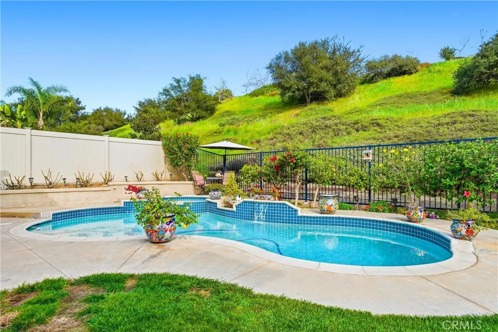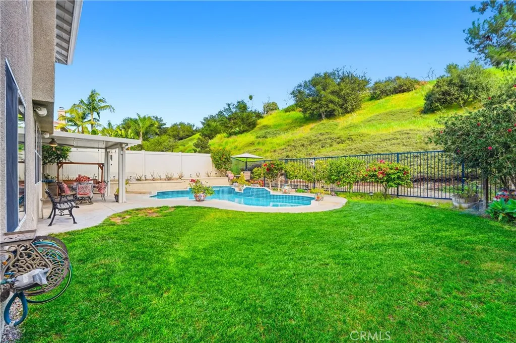 Welcome to this stunning Wagon Wheel home situated on an expansive private lot, offering soaring ceilings, abundant natural light, and exceptional indoor-outdoor living. This beautifully updated residence features 4 bedrooms plus a spacious bonus room and 3 full bathrooms, including a spacious downstairs bedroom and full bathroom, ideal for guests, multi-generational living, or a home office. The main living areas are enhanced by wide-plank white oak hardwood floors throughout the downstairs, creating a warm, cohesive, and elevated feel. The heart of the home is the gourmet kitchen, showcasing a designer backsplash, farmhouse apron-front sink, convenient pot filler, premium appliances, and a built-in wine cooler - perfect for both everyday living and entertaining. The open floor plan flows seamlessly into generous living and dining spaces highlighted by dramatic high ceilings. Upstairs, the private living quarters feature newer carpeting throughout, along with additional bedrooms and a large bonus room offering flexible space for a playroom, media room, or fifth bedroom. Step outside to an entertainer's dream backyard complete with a sparkling pool, spa, and BBQ area, complemented by mature fruit trees and raised garden beds, creating a perfect balance of relaxation, outdoor dining, and homegrown harvests in a private setting. Additional highlights include approximately 2,800 sq ft of living space on a 7,440 sq ft lot, and a prime location in the highly desirable Wagon Wheel community close to parks, hiking trails, and award-winning schools. This home also features a three car, direct access garage, OWNED SOLAR and REPIPED with Pex. Here is your chance to take advantage of a rare opportunity to own a turnkey home with luxury finishes and resort-style outdoor living. Come and take a tour today!