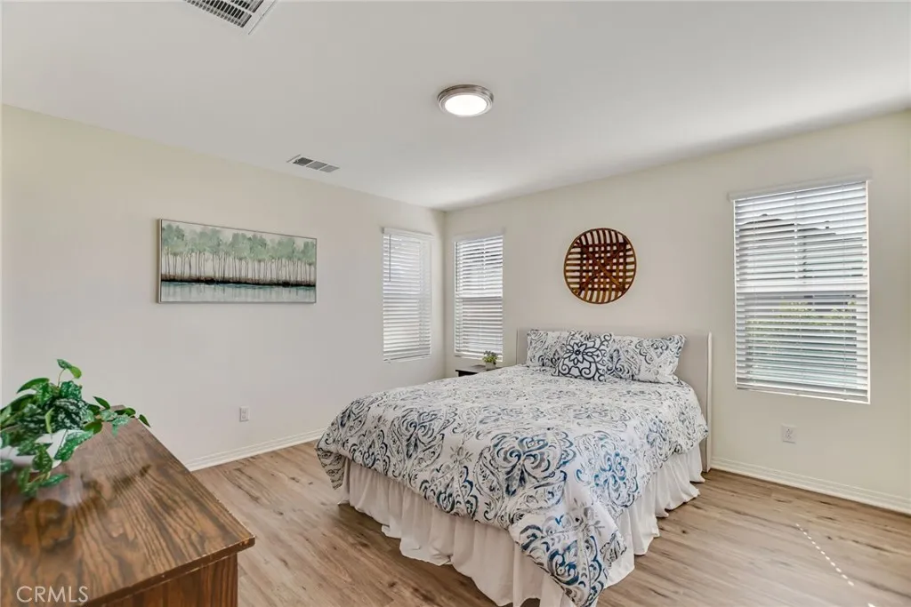 WELCOME HOME! This beautifully upgraded, newly built, move-in-ready residence is tucked inside the highly sought-after gated community of Bayberry at Spring Mountain Ranch! Offering 4 spacious bedrooms and 3 full bathrooms, this detached home blends modern comfort with timeless style. Step inside to discover a bright, open-concept floor plan with upgraded laminate flooring throughout. Your main-floor bedroom and full bath provide the perfect setup for guests or multi-generational living. At the heart of the home, the chef's kitchen; impresses with crisp white cabinetry, elegant granite countertops, and stainless-steel appliances and it flows seamlessly into the dining and living areas - ideal for entertaining and everyday living alike. Upstairs, your primary suite boasts stunning views of the surrounding hills, a luxurious spa-inspired bathroom with dual sinks, a soaking tub, a separate shower, and a generous walk-in closet. Two additional bedrooms also have stunning views of the surrounding hills and share a thoughtfully designed Jack-and-Jill bathroom, providing both privacy and convenience. Outside, enjoy a low-maintenance, drought-tolerant yard with no rear neighbors - just private and tranquil hillside views. Additional highlights include two separate automatic garages, both offering direct interior access. Located in a newer master-planned community, this pristine home delivers modern living, peace of mind, and incredible value. This house is just minutes from to UC Riverside, Cal Baptist University, Loma Linda Hospital and Loma Linda University and Metro link. Truly turnkey and ready for you to move right in!