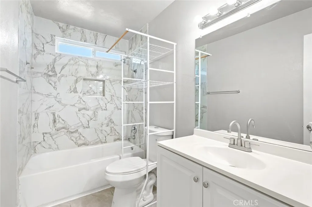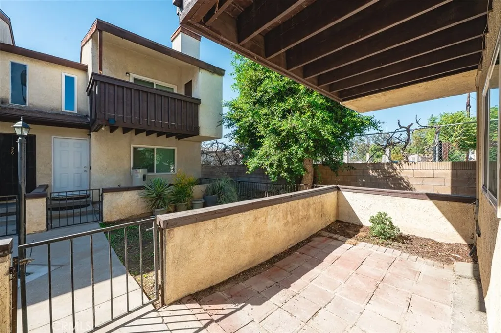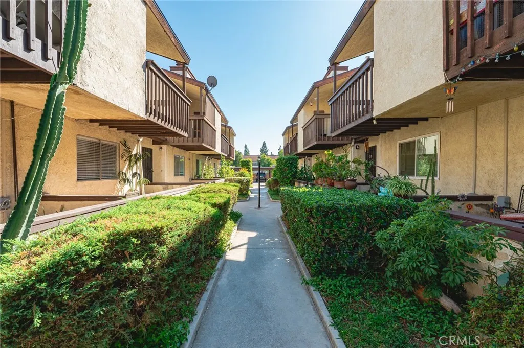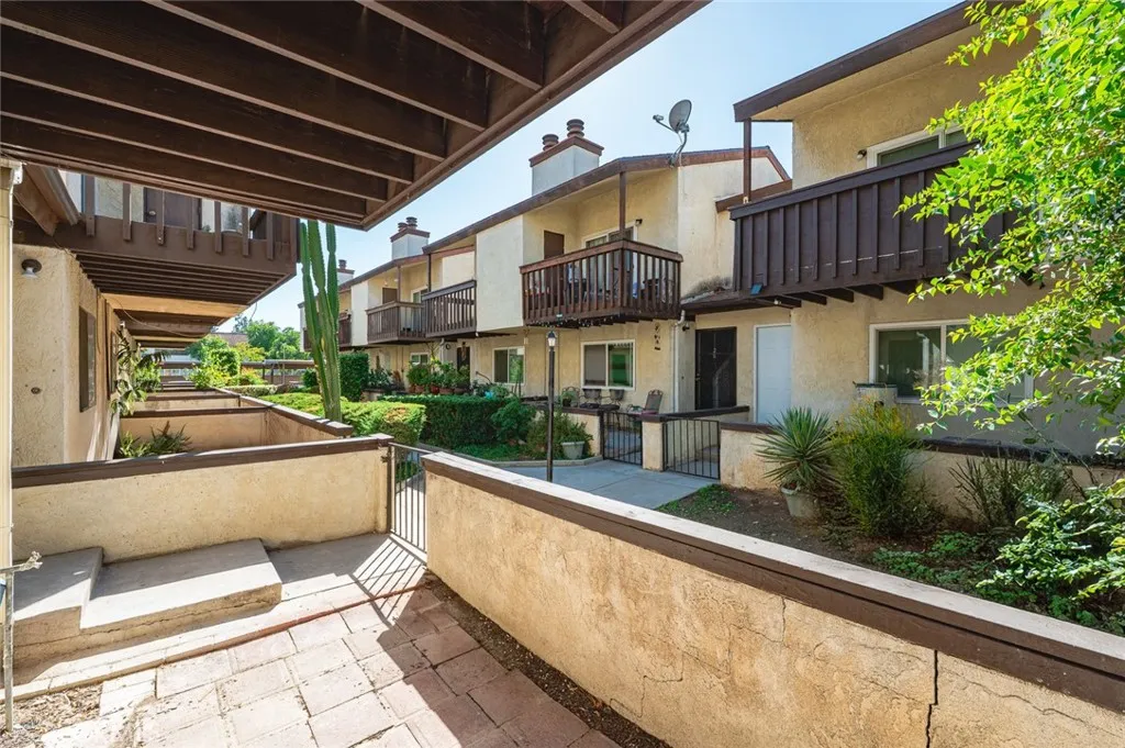 Fully renovated two-story corner unit boasts 2 bedrooms and 1.5 bathrooms, offering both privacy and convenience. A brand-new kitchen with modern finishes, upgraded plumbing, updated bathrooms, new light fixtures, fresh flooring, and all-new windows and sliding doors. The bright and open floor plan creates a warm and inviting atmosphere, ideal for relaxing or entertaining in the backyard, balcony, and front yard. The living room includes a fireplace and flows seamlessly into the dining area. A dedicated laundry room provides extra convenience and storage. In addition, a private balcony with its own storage area. This unit includes one assigned covered carport. HOA covers water, trash, sewer, and insurance. This community has recently replaced the entire roof. The seller is a meticulous homeowner who has lovingly maintained the property and even added custom curtains and balcony drapes, ensuring it's truly move-in-ready. Centrally located near parks, schools, shopping, and the Metrolink. A gem ideal for first-time buyers, downsizers, or investors.